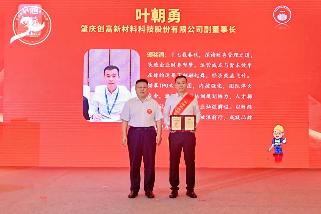 创富新材副总经理叶朝勇先生,深谙财务管理之道,铸造企业财务坚壁,运筹成本与资本效率,强化内控与团队建设,用责任与担当,汗水与拼搏,为行业发展注入新的动能,荣膺“全国建筑铝合金模板行业卓越领导者”。